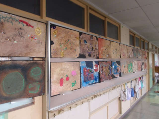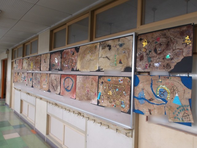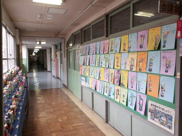 校内では、図工の先生が学校を美術館に変え、子どもたちのたくさんの作品が校舎内にちりばめられていました。