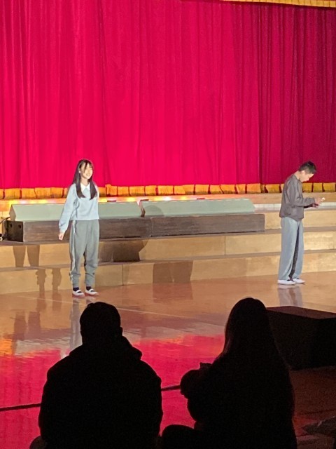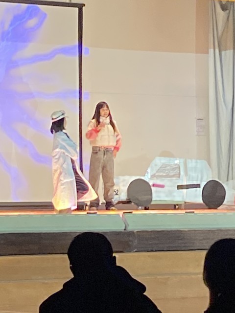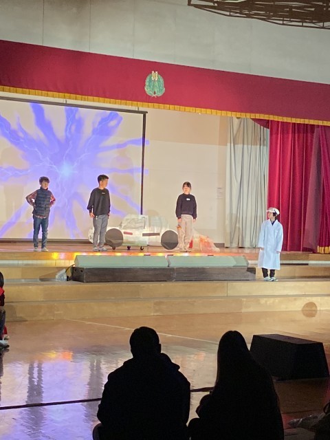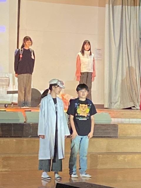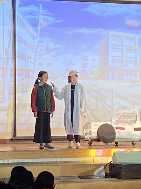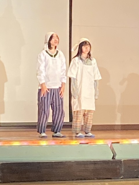 全力で演じ 全力で歌った子どもたち。照明や音響、大道具、小道具など裏方も頑張りました。