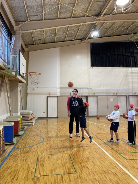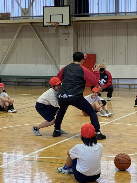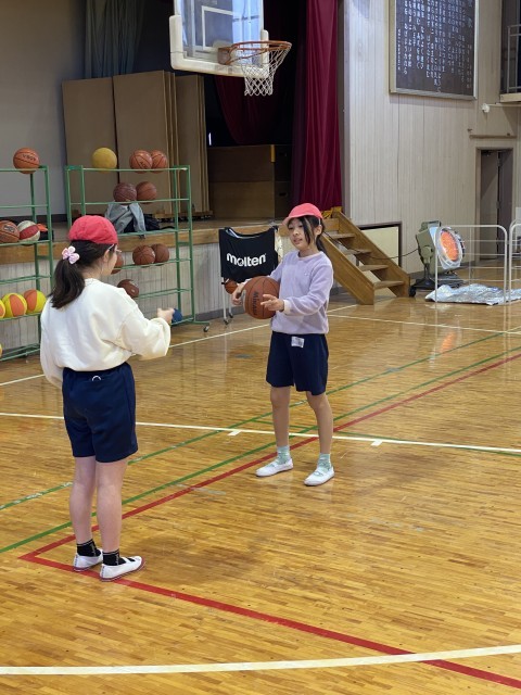 今日は五年生がバスケットボールのプロ選手を招いて出前授業を行いました。