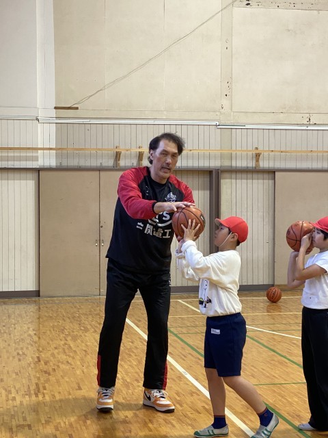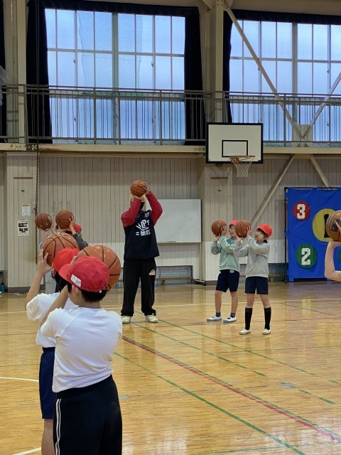 ドリブルの形やシュートの形を教えていただきました。少し肘を挙げるだけでゴールにボールが吸い込まれ、コツを掴んだ児童がたくさん。楽しんで取り組みました
