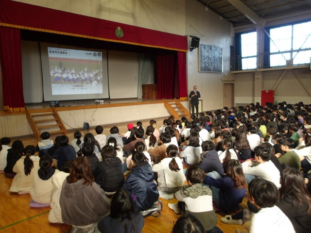 今日の全校朝会は「研究発表に向けて」