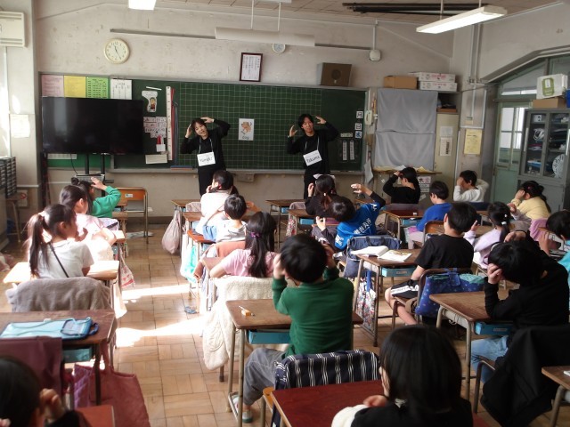 今日が今年度最後の外国語活動の日でした。学生ボランティアのみなさん1年間ありがとうございました。