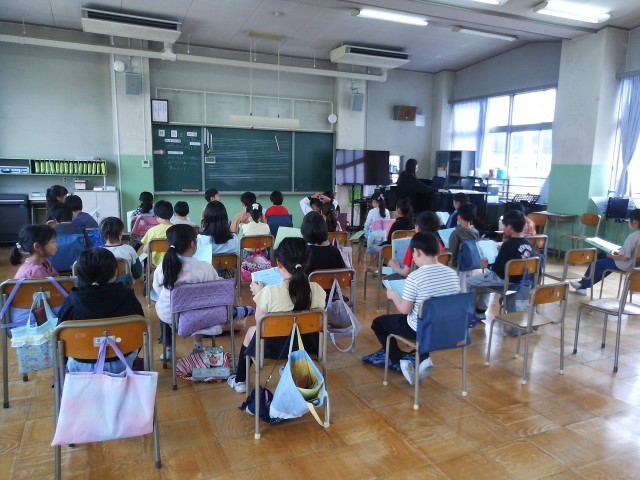 今日は音楽で離任式の歌を歌っていました。