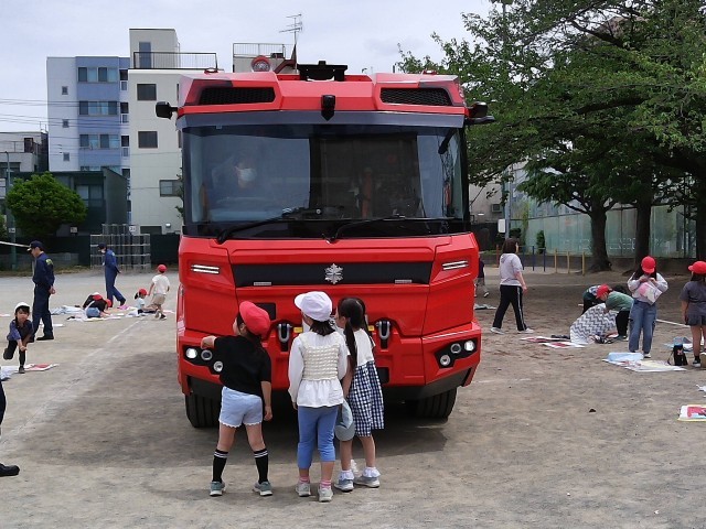 日本に1台しかない大型電気ポンプ車 あまりの大きさにみんなびっくりでした。