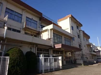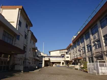 真っ青な空と第二小学校の白い校舎のコントラストがきれいです。