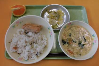 4月19日(金)の給食 公開日 2019/04/20 更新日 2019/04/20 今日の給食 ☆今日の献立 梅じゃこごはん 鶏肉のみそ焼き かきたま汁 キャベツのはちみつレモン風味和え きよみオレンジ 牛乳 いいね(0)