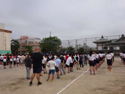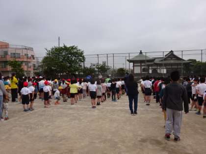 校庭に全校児童が集まります。