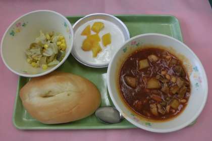 5月17日(金)の給食 公開日 2019/05/17 更新日 2019/05/17 今日の給食 ☆今日の献立 ソフトフランスパン チキンビーンズシチュー フレンチサラダ ピーチヨーグルト 牛乳 いいね(0)