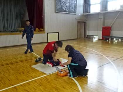 第二小学校では毎年、消防署の方々を講師に迎え、講習会を開いています。