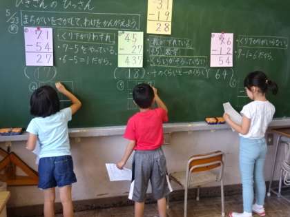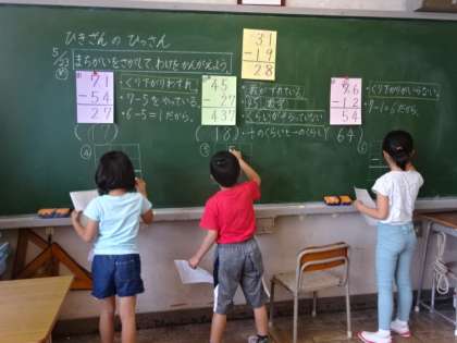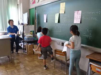 子供たちは自分で考え、友達と話し合い、全体に発表します。