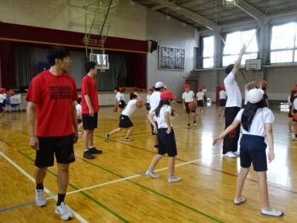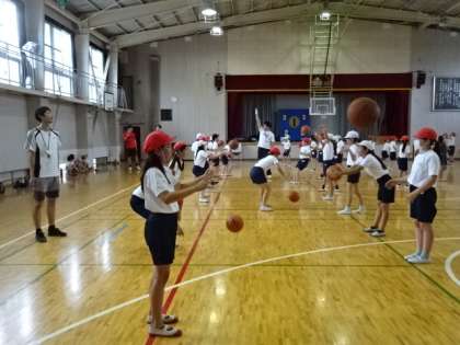 5年生の子供たちがバスケットボールに取り組んでいます。