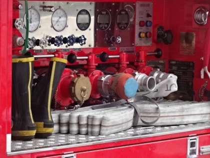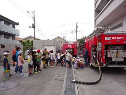 消防「これは、水道管から水をくみ上げるためのホースです。太いでしょ!」