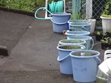 たくさんのバケツが並んでいます。