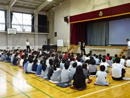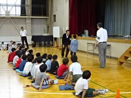 ロールプレイ(模擬演技)をしながら、子供たちに対応方法を考えさせます。