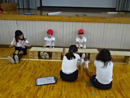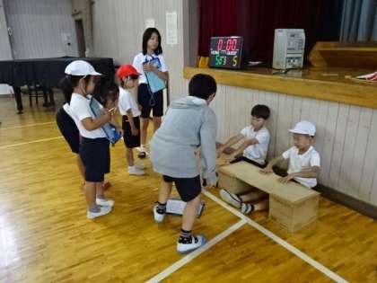 上の学年の子供たちが下の学年の子供たちをサポートします。