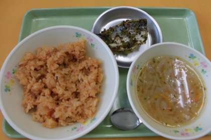 ☆今日の献立 大豆ピラフ あじの香草パン粉焼き ジュリエンヌスープ 牛乳
