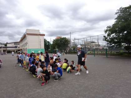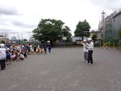 校庭で遊んでいた子供たちは、校庭の真ん中に集まります。