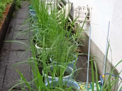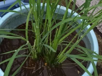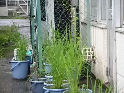 南校舎の裏側にある「バケツ稲」の様子です。
