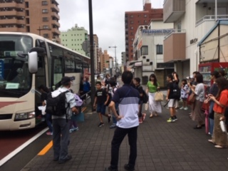 バスに乗り込みます。