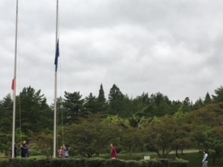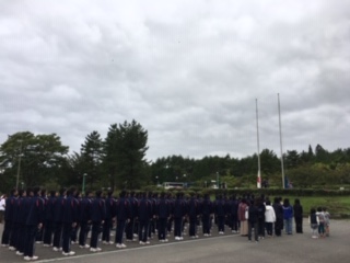こだま学級の2名の子供たちが国旗等の掲揚を行います。