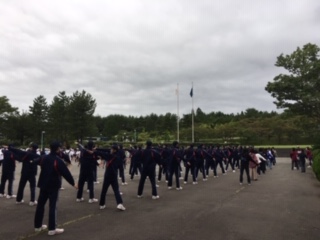 一日の始まりを体操で始めます。
