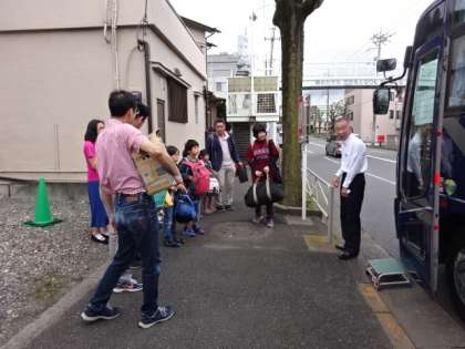 教職員が出迎えます。