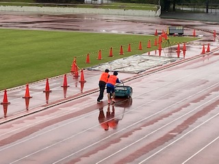 トラックの水分を拭き取ります。