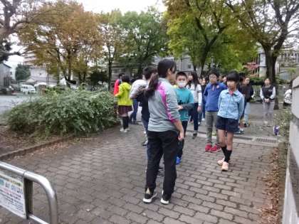 6年生の子供たちは、近隣の公園の落ち葉を拾います。