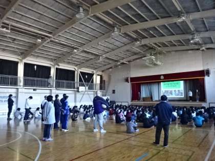 全校児童は静かに、真剣に聞いています。