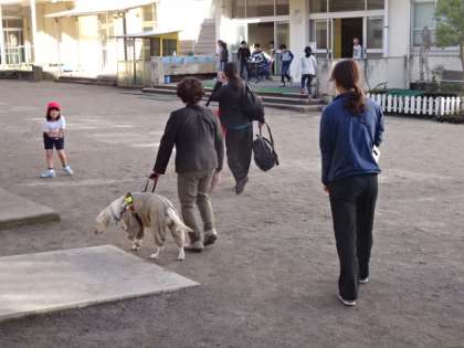講師「ハーネスを付けているときは、盲導犬はお仕事中なのよ。」