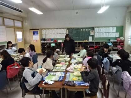 みんなで一緒に食べると、給食はもっとおいしく感じます。