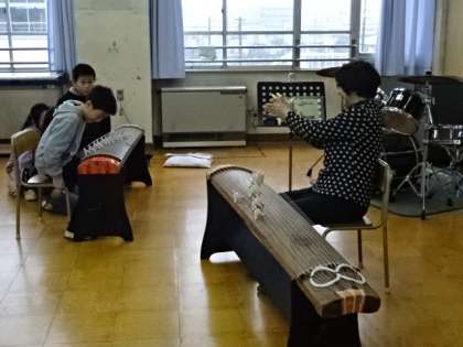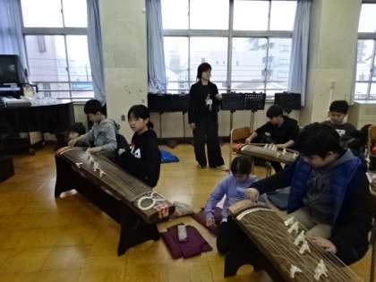 お筝の音色が音楽室に響きます。
