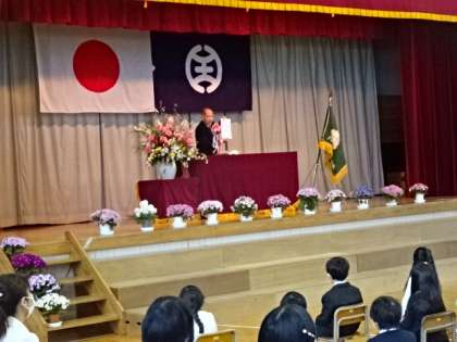新1年生の入場に続き、学校長が話をします。