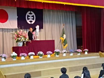 校長「おはようございます。さようなら。ありがとうございます。ごめんなさい、など、相手の人に、自分の気持ちをちゃんと伝えられる人になってください。」