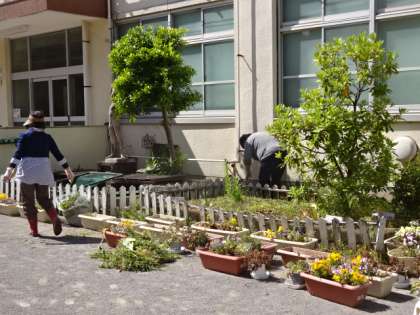 第二小学校の子供たちが登校する日は、美しい花々で迎えたいと思います。