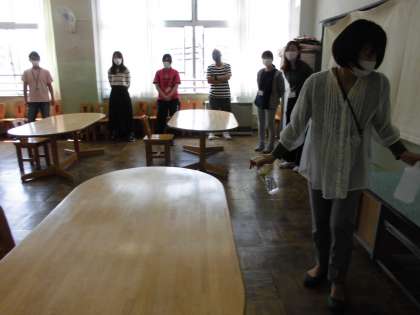 登校日に向けて! 消毒研修(令和2年5月13日 教職員編)PART2