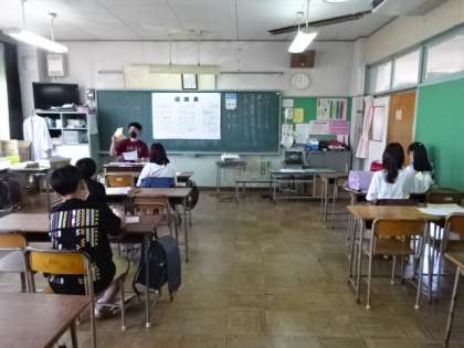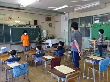 教室の中は、子供たち同士が互いに間をあけています。