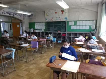 隣の6年生の教室では新しい課題の確認中です。