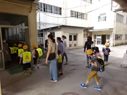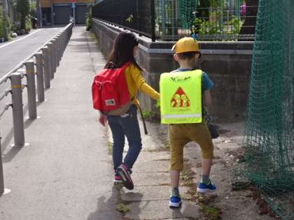 保護者の方々が子供たちの登校に付き添ってくださいます。