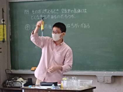 時間講師の先生が「機体検知管」の使い方を説明しています。