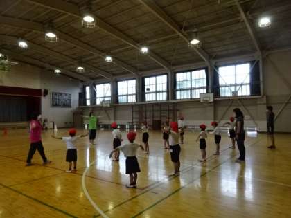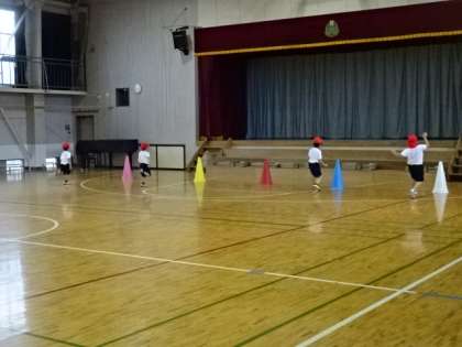 整列したり、準備運動をしたりします。今回は「走る」運動です。