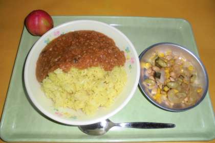 ☆今日の献立 ドライカレー 豆サラダ プラム 牛乳