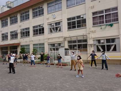 第二小学校を使用している団体の方々が夏季休業期間を活用して毎年、ラジオ体操と学校清掃を行っています。