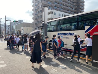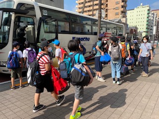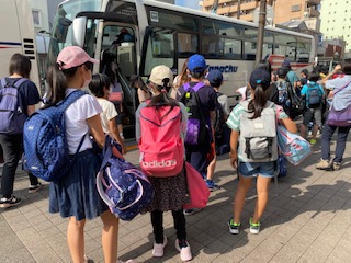 子供たちはバスに乗り込みます。