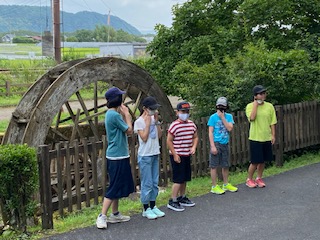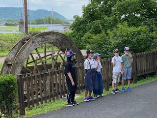 水車をバックに、記念撮影です。