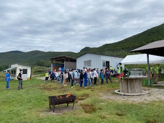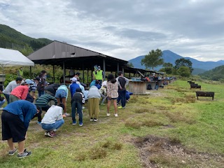 鷹山牧場の方から、バーベキューの説明を聞きます。