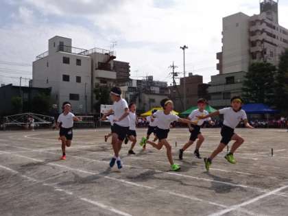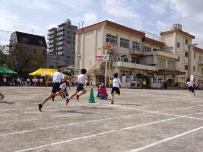 ゴールするまでハラハラドキドキ。高学年の子供たちが迫力のある走りを披露しました。