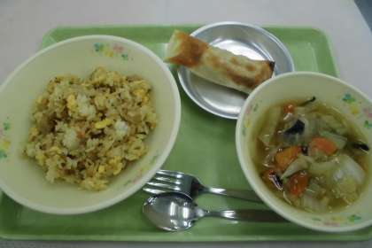 ☆今日の献立 チャーハン ツナポテトぎょうざ 八王子産白菜のスープ 牛乳