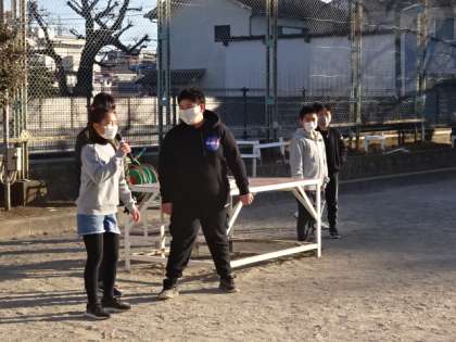 校庭に子供たちが集まります。