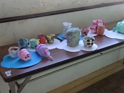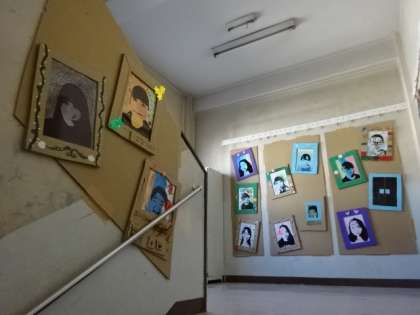 校舎内の様々な場所に、子供たちの作品が展示されています。